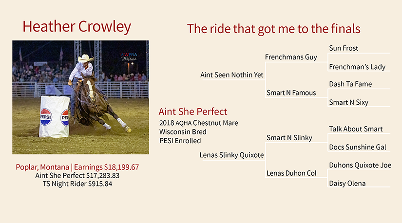 Do you raise your own horses? Or do you purchase? Are you looking for specific bloodlines? Both. Raised the first horse I qualified on. (Sparky (BJO)). Bought the next two as weanlings (Shazam from treasure state and Hershey from Grantiers in Winnett) and Lucy was just a blessing. Got her when she was 4. Trusted that gut feeling I needed her. More looking for conformation but when breeding something I try to fill in the gaps in the mare. Also something in some incentives helps with resale and futurities down the rode. Lucy’s made me a believer in ASNY.